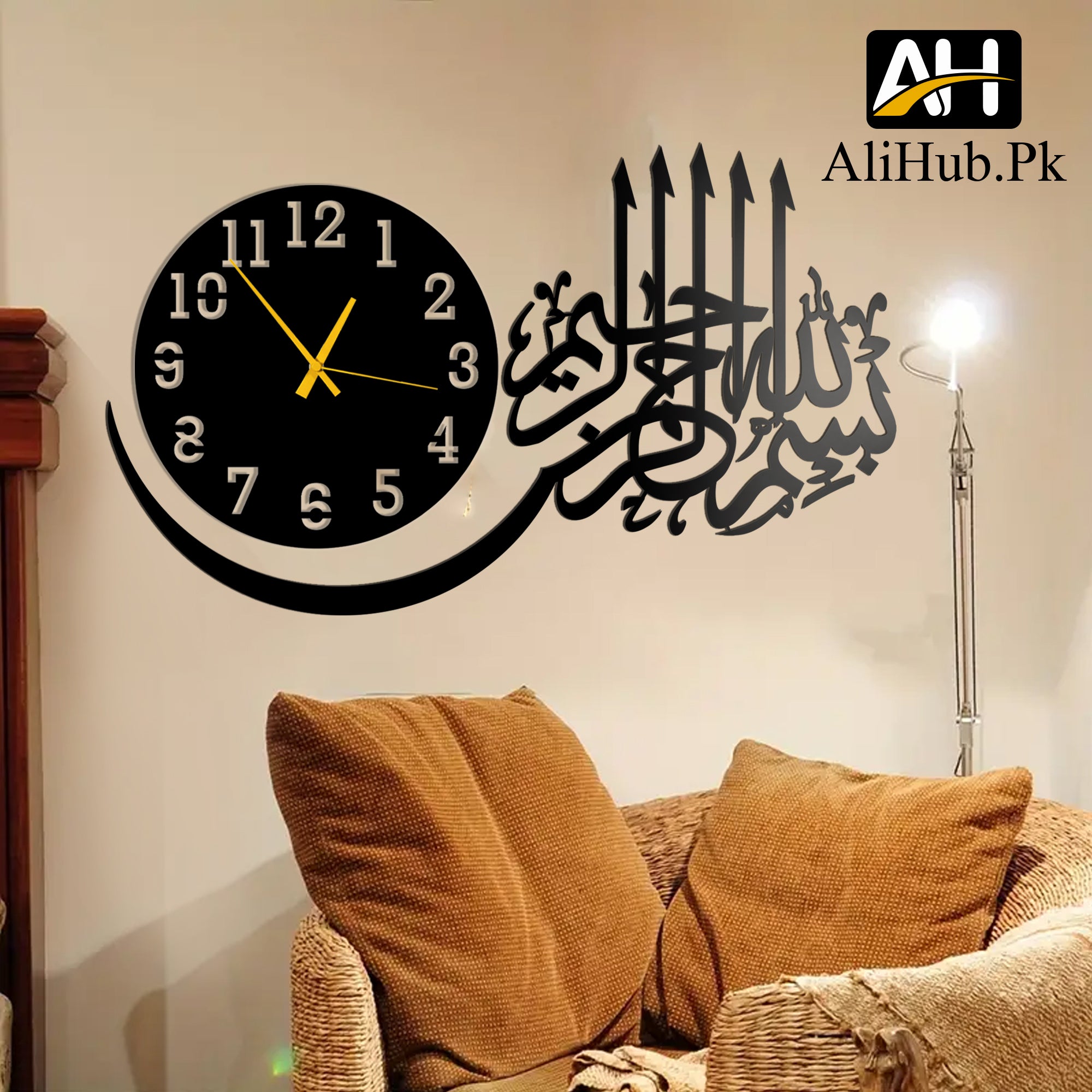 Spiritual Design: Bismillah Wooden Wall Clock