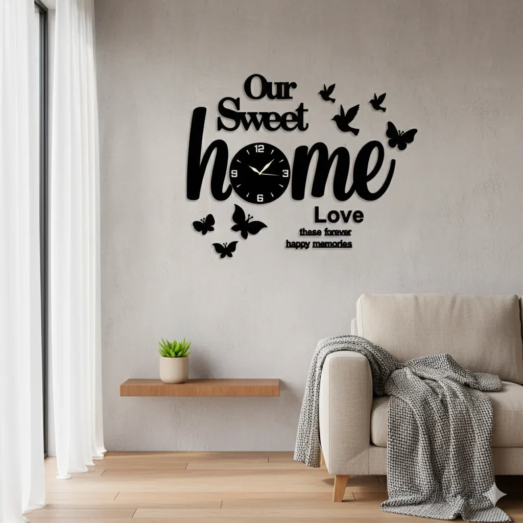 Transform your space into a warm, inviting haven with our “Our Sweet Home” Wall Decor – now featuring a stylish wooden wall clock!